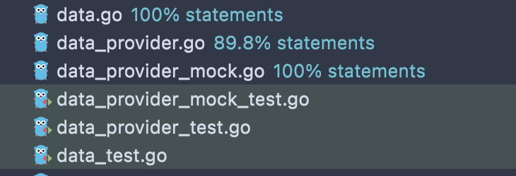 }Mocking makes heavy use of interfaces. In the above, MockData needs to conform to the DataProvider interface by having the same functions with the same signatures. I use error states in all mocks to simulate failures at different levels of the application.